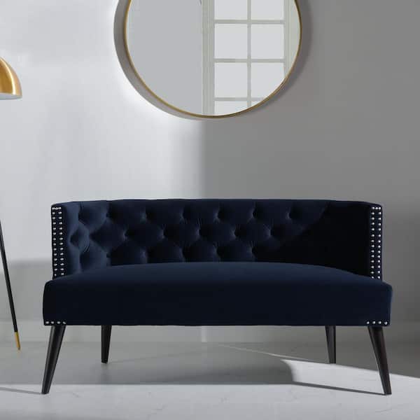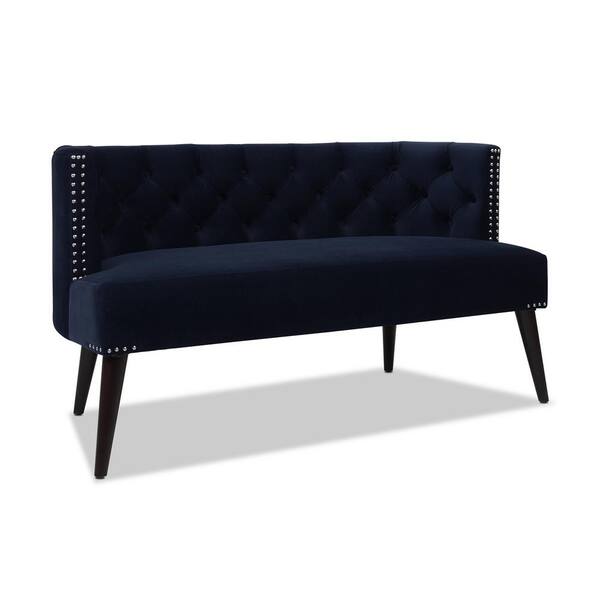Celine 56 in. Dark Navy Blue Tufted Velvet 2-Seater Settee with Nailheads