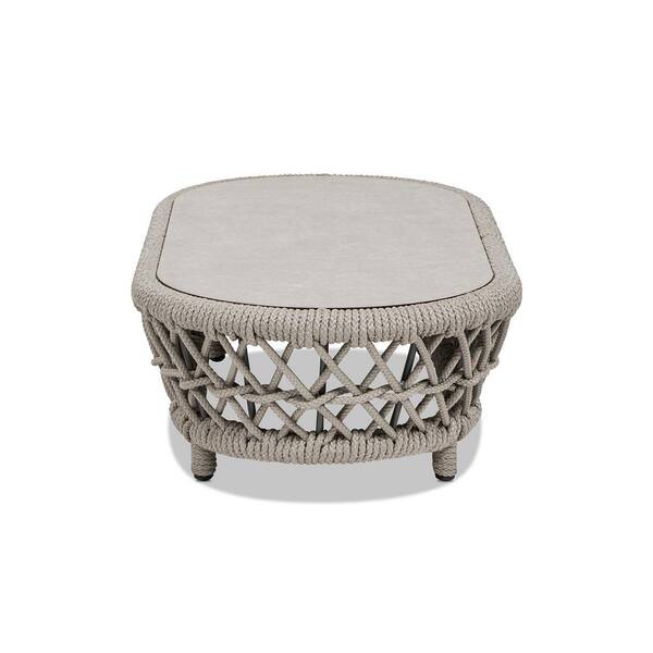 Everly 43.5 in Oval Woven Patio Coffee Table in Light Beige Olefin