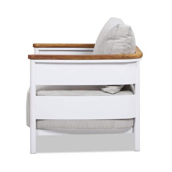 Jennifer Taylor Rhodes 29 in. Upholstered Teak and Aluminum Patio Arm Chair in Birch Gray Chenille