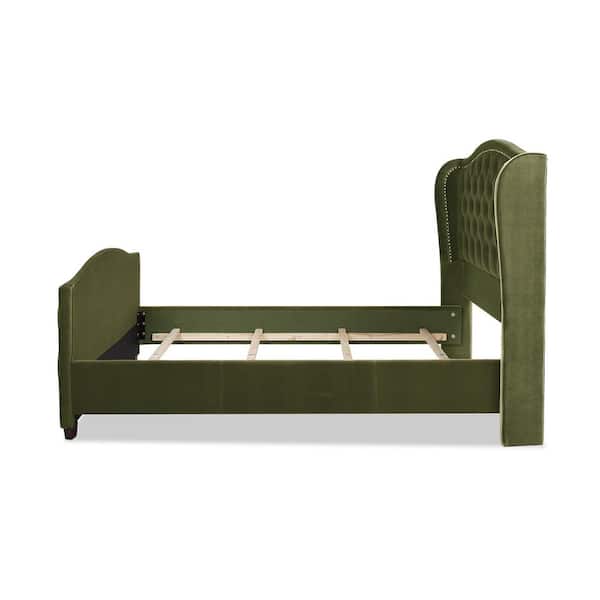 Marcella Olive Green Performance Velvet Queen Panel Bed
