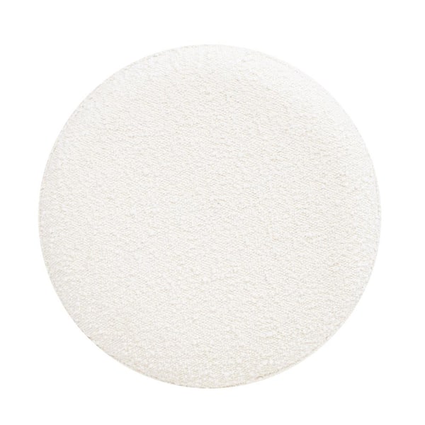 Nebula Round Burl Wood Upholstered Ottoman in Ivory White Boucle