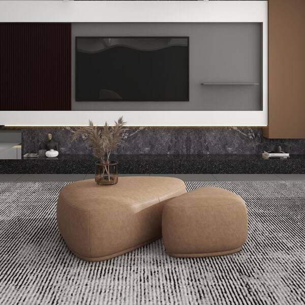Pebble 44 in. and 26 in. Rounded Triangle Cocktail Ottoman Set, Tuscan Tan Brown Top Grain Leather