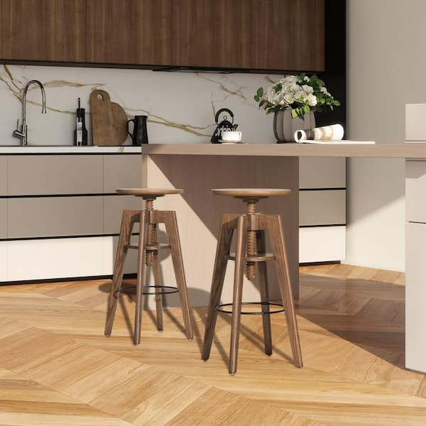 Spencer 26 in. Minimalist Oak Wood Adjustable Bar Counter Stool in Walnut Brown