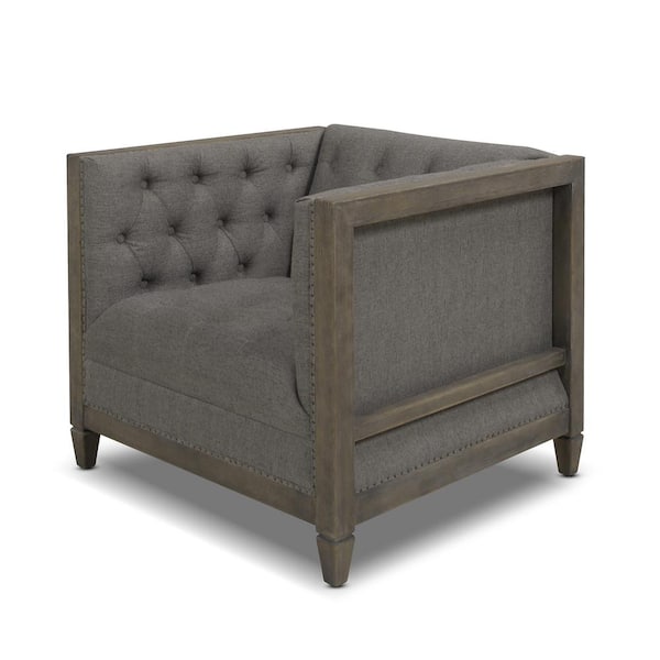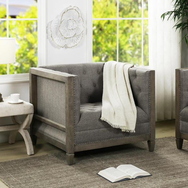 Sylvan 34 in. Dark Heathered Gray Linen Farmhouse Oak Tuxedo Arm Chair