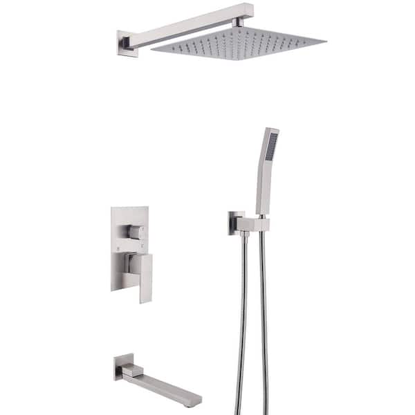 Jera Single-Handle 3-Spray Tub and Shower Faucet with 10 in. Wall Mount Shower Head in Brushed Nickel (Valve Included)