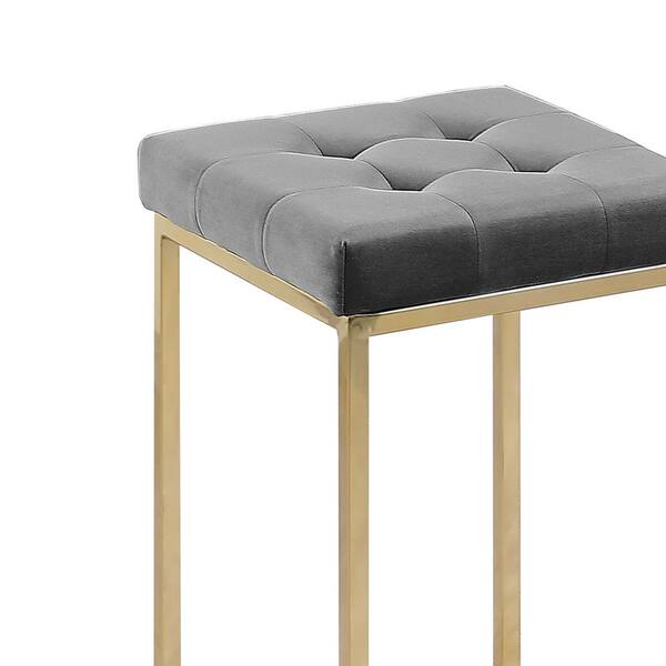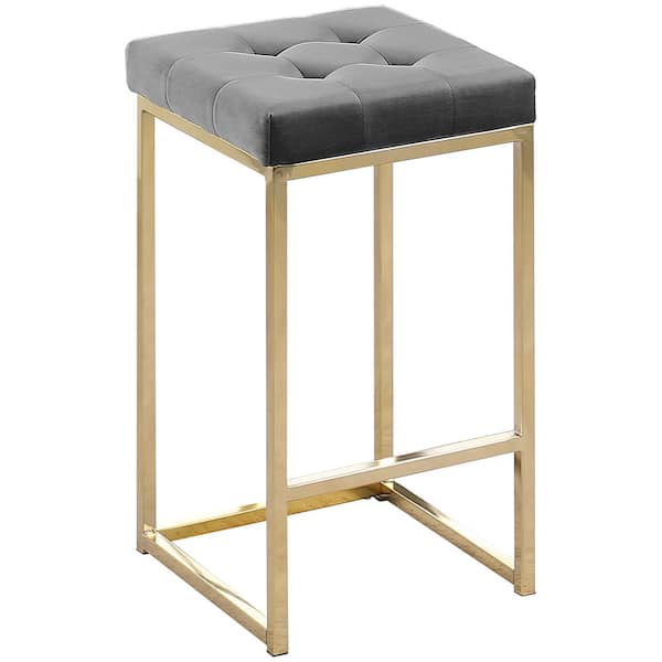 Jersey 26.5 in. H Gray Velvet Counter Height Stool in Gold (Set of 2)