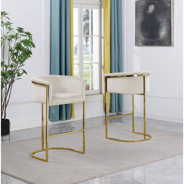 Jessica 24 in. Cream Low Back Gold Metal Frame Counter Height Chair with Velvet Fabric (Set of 1)