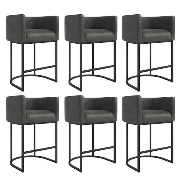 Jessica 26 in. Black Gray Counter Bar Stool Faux Leather Upholstered Barrel Counter Stool with Metal Frame (Set of 6)