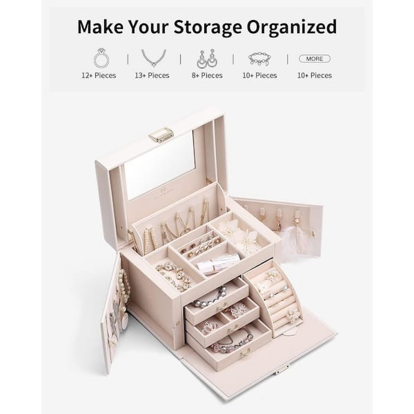 Jewelry Box Organizer for Women, Large Baroque Jewelry Holder Organizer with Mirror, Earrings, Rings, Cloud White