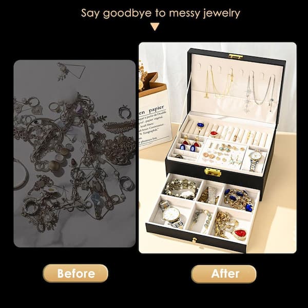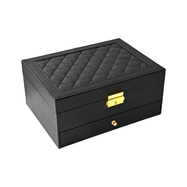 Jewelry Box Rectangular Large PU Leather Jewelry Organizer Storage Case with Two Layers Display