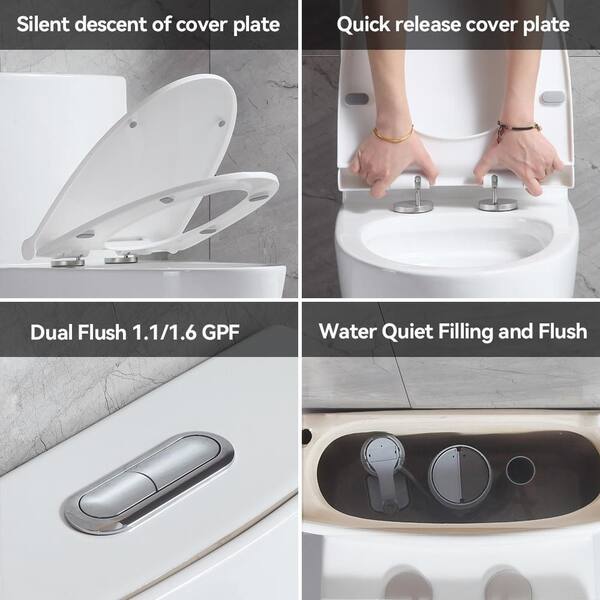 1-Piece 1.1/1.6 GPF Dual Flush Elongated Toilet in White