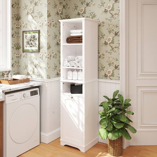 15.75 in. W x 13.75 in. D x 63.75 in. H White MDF Freestanding Linen Cabinet with Adjustable Shelves