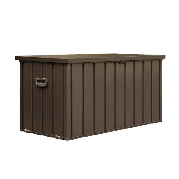 150 Gal. Dark Brown Steel Deck Box with Lockable Lid, Mobility Rollers and Side Handles