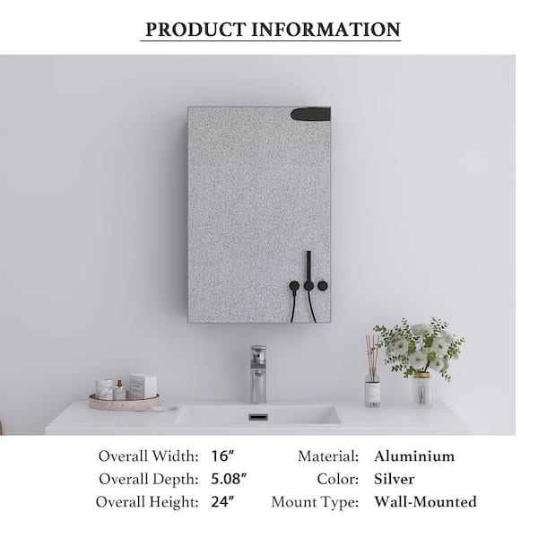 16 in. W x 24 in. H Rectangular Aluminum Medicine Cabinet with Mirror