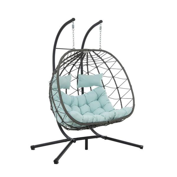 2-Person Steel Patio Swing with Green Cushions