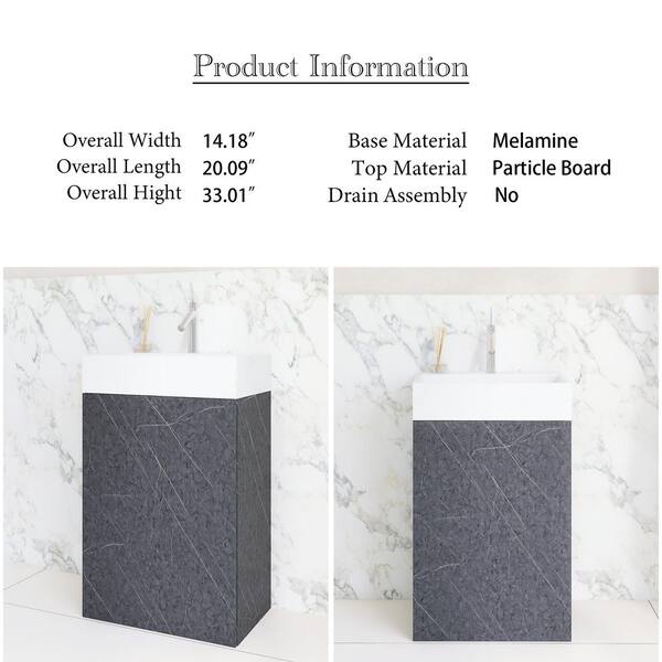 20.09 in. W x 14.18 in. D x 33.10 in. H Freestanding Bath Vanity in Black with White Ceramic Top