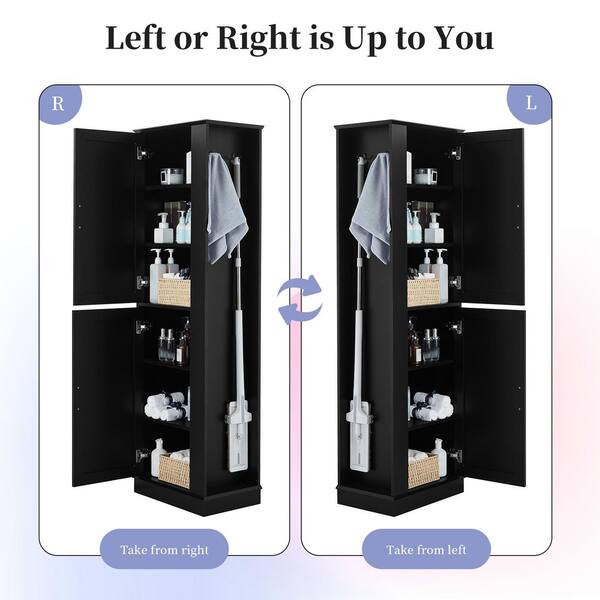 21 in. W x 14 in. D x 68 in. H Black Linen Cabinet with Hook and Adjustable Shelf