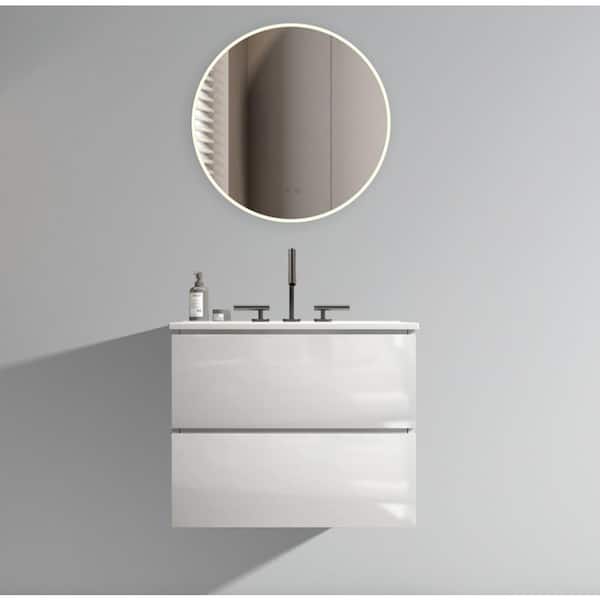 24.00 in. W x 18.30 in. D x 21.10 in. H Single Sink Floating Bath Vanity in White with White Ceramic Top