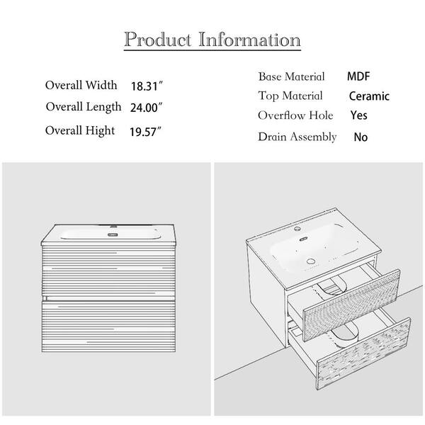 24.02 in. W x 18.31 in. D x 19.57 in. H Wall-Mounted Bath Vanity Set in Brown with White Ceramic Top