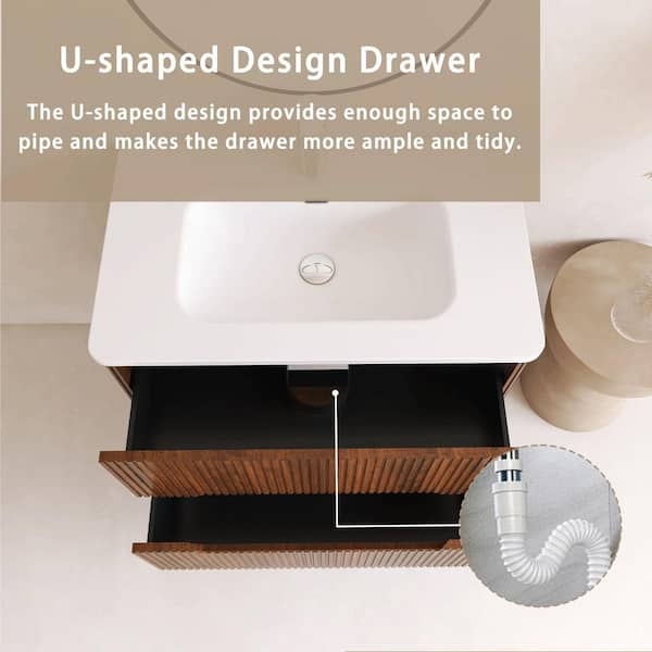 24 in. Single Sink Wall-Mounted Walnut Bath Vanity with White Ceramic Top