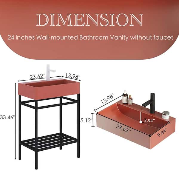 24 in. W x 14 in. D x 33 in. H Bath Vanity in Black with Red Ceramic Top