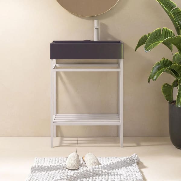 24 in. W x 14 in. D x 33 in. H Bath Vanity in White with Purple Ceramic Top