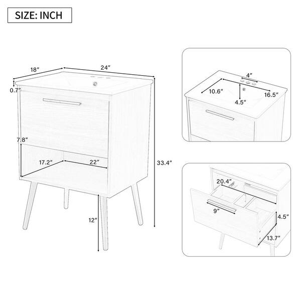 24 in. W x 18 in. D x 33.4 in. H Freestanding Bathroom Vanity Set in Natural with White Ceramic Top