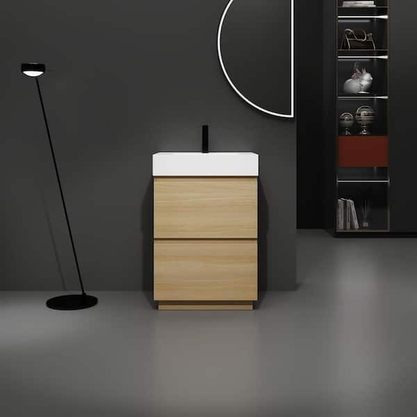 24 in. W x 18 in. D x 35 in. H Single Sink Freestanding Bath Vanity in Oak with White Resin Top