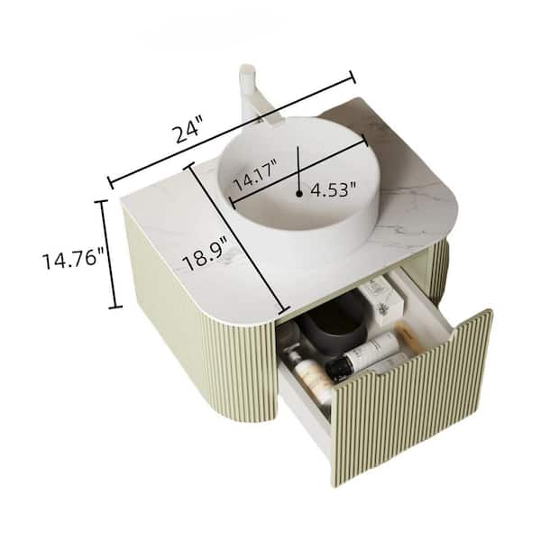 24 in. W x 19 in. D x 19 in. H Single Sink Wall-Mounted Bath Vanity in Light Green with White Engineered Marble Top