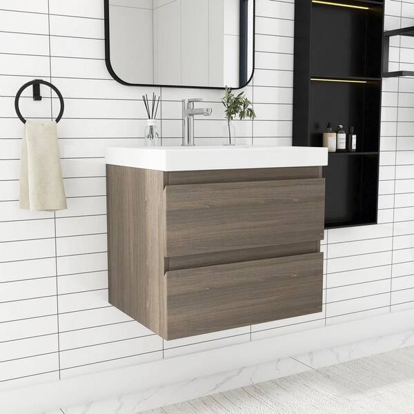 24 in. W x 20 in. D x 22 in. H Single Sink Floating Bath Vanity in Ash Grey with Glossy White Resin Top