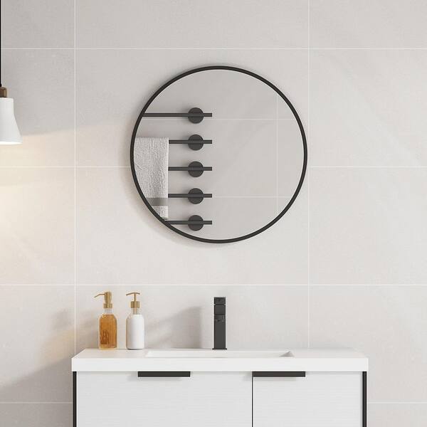 24 in. W x 24 in. H Large Round Aluminum Framed Wall Mounted Bathroom Vanity Mirror in Black