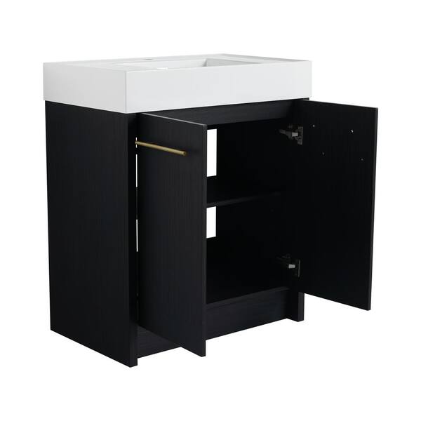 29.5 in. W x 18.1 in. D x 35.1 in. H Freestanding Bath Vanity in Black Chestnut with White Resin Top