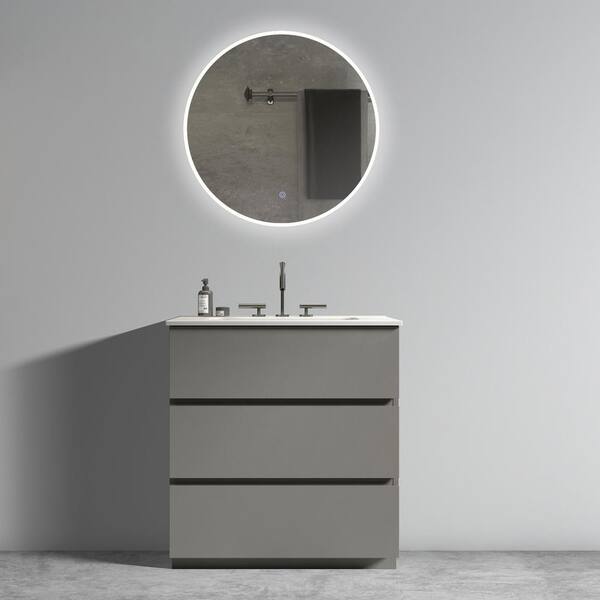 29.92 in. W x 18.30 in. D x 32.96 in. H Single Sink Freestanding Bath Vanity in Gray with White Engineered Stone Sink
