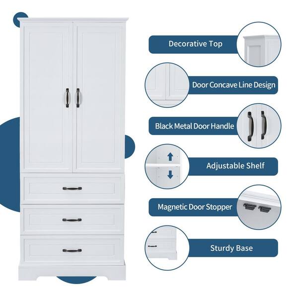 29 in. W x 16 in. D x 69 in. H White Linen Cabinet