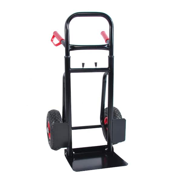3.19 cu. ft. Black Red Steel Garden Cart with Double Handles, Retractable Handle and Folding Toe Board