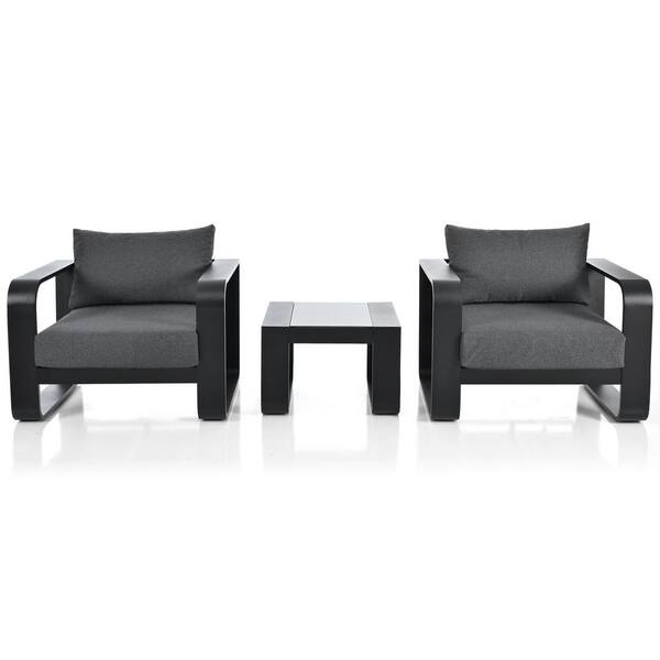 3-Piece Aluminum Patio Conversation Set with Gray Cushions