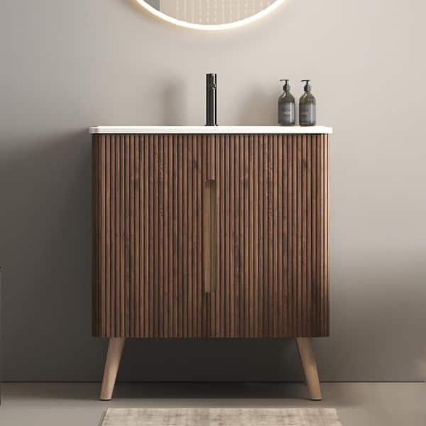 30 in. W x 18 in. D x 32 in. H Single Sink Freestanding Bath Vanity in Walnut with White Ceramic Top