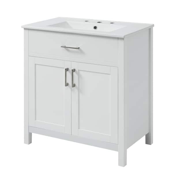 30 in. W x 18 in. D x 34 in. H Freestanding Bath Vanity in White with White Ceramic Top