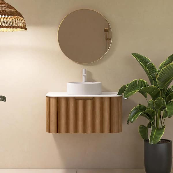 30 in. W x 19 in. D x 19 in. H Single Sink Wall-Mounted Bath Vanity in Natural Wood with White Artificial Marble Top