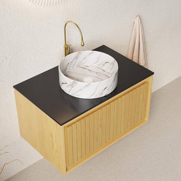 30 in. W x 19 in. D x 21 in. H Wall-Mounted Bath Vanity in Light Oak with Black Sintered Stone Top