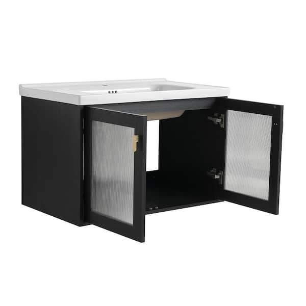 32 in. W x 18.7 in. D x 20.7 in. H Wall Mounted Bath Vanity in Black with White Ceramic Top