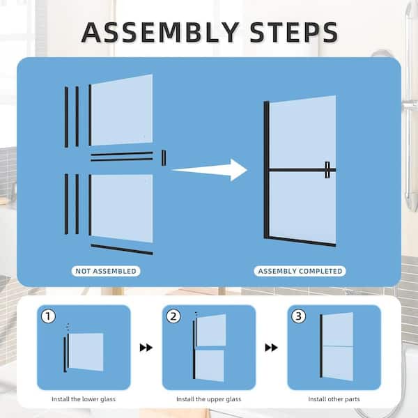 32 in. W x 55 in. H Pivot Tub Door in Black with Clear Tempered Glass