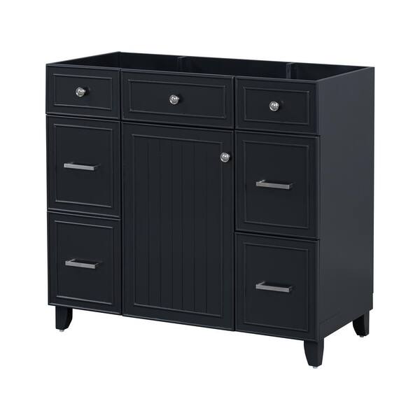 35.4 in. W x 16.65 in. D x 33.3 in. H Freestanding Bath Vanity Cabinet without Top in Black