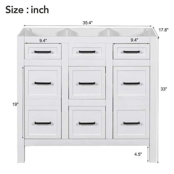 35.4 in. W x 17.8 in. D x 33 in. H Freestanding Bath Vanity Cabinet without Top in White