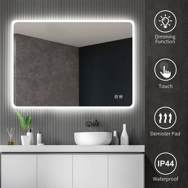 35.4 in. W x 27.5 in. H Large Rectangular Frameless Wall-Mount Anti-Fog LED Light Bathroom Vanity Mirror