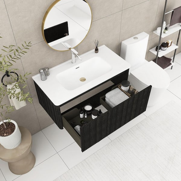 35.8 in. W x 18.3 in. D x 15.6 in. H Single Sink Wall-Mounted Bath Vanity in Black with White Integrated Ceramic Sink