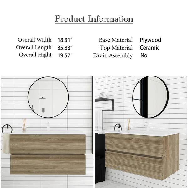 35.83 in. W x 18.31 in. D x 19.57 in. H Wall-Mounted Bath Vanity Set in Oak with White Ceramic Top