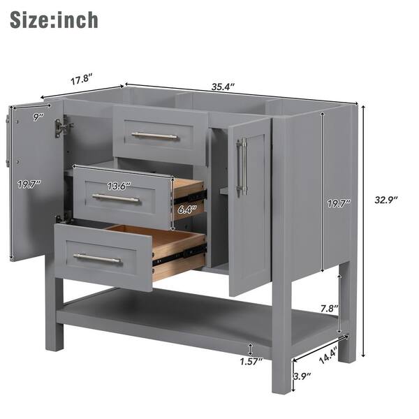 36 in. W x 18 in. D x 33 in. H Freestanding Bath Vanity Cabinet without Top in Grey