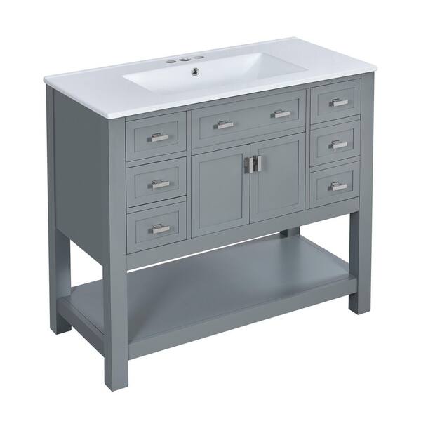 36 in. W x 18 in. D x 34 in. H Single Sink Freestanding Bath Vanity in Grey with White Ceramic Top