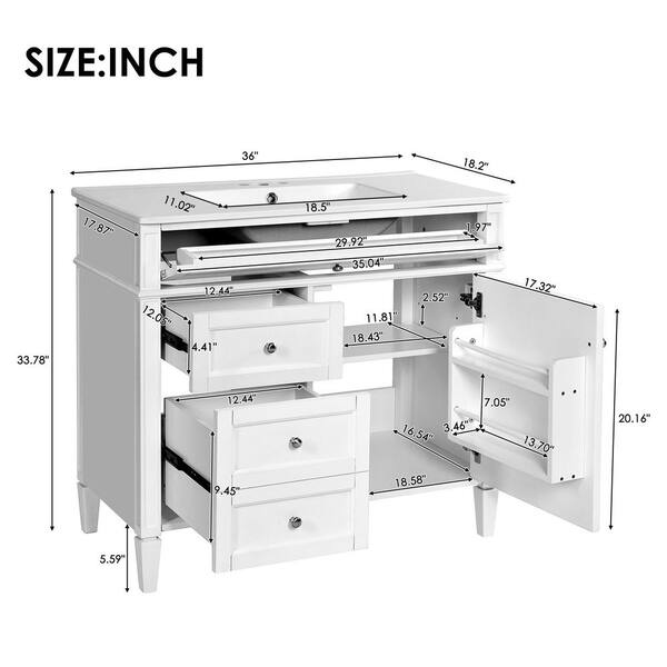 36 in. W x 18 in. D x 34 in. H Single Sink Freestanding Bath Vanity in White with White Ceramic Top